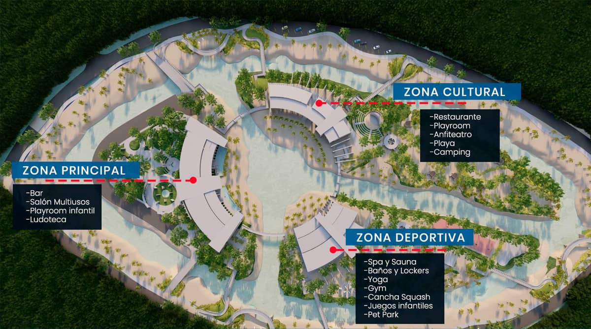 Casa club dividida en 3 zonas con más de 25 exclusivas amenidades en su Isla Central